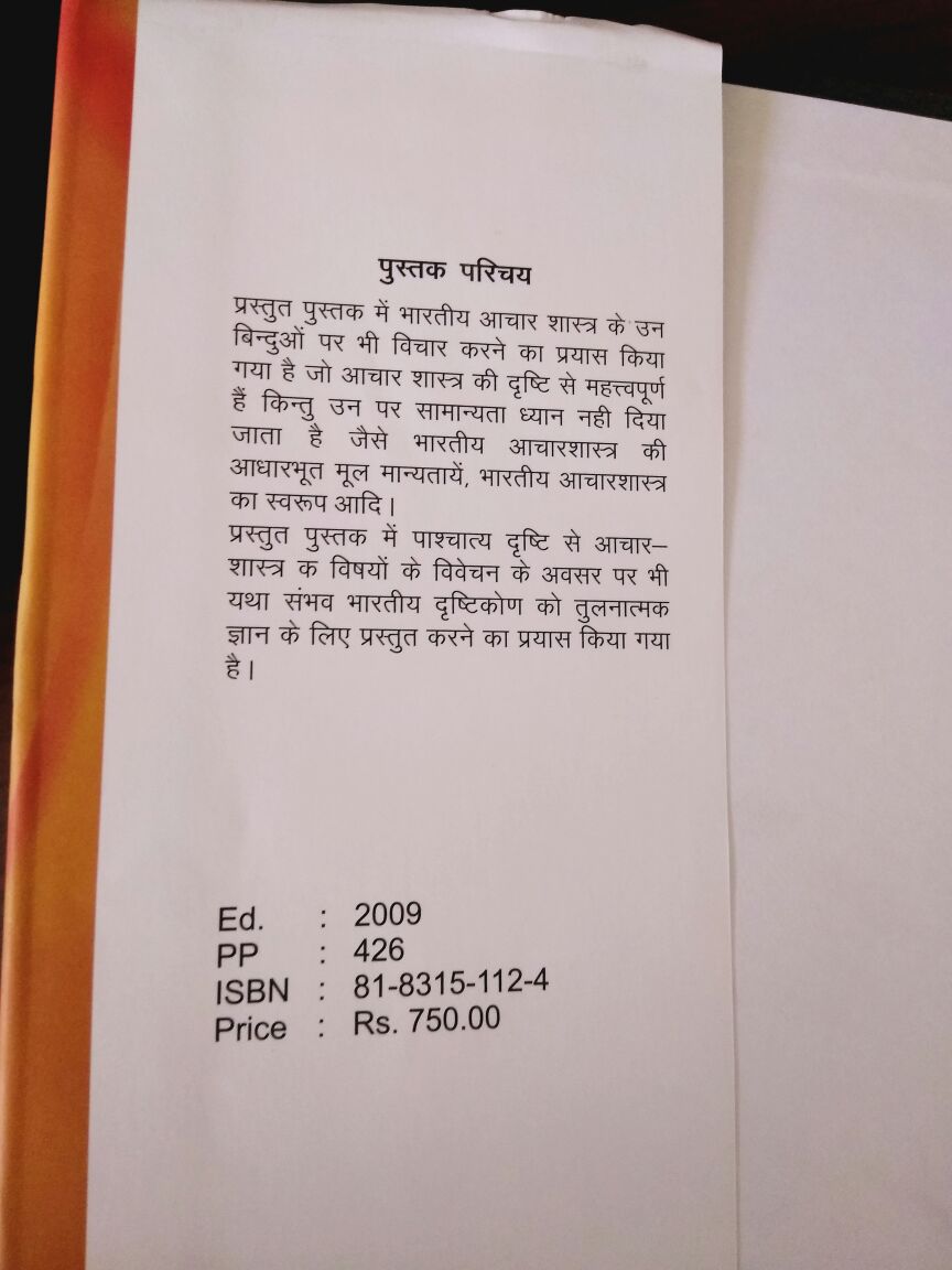 प्रस्तुत पुस्तक में आचार शास्त्र के उन् बिन्दुओ पर भी विचार करने का प्रयास किया गया है जो आचार शास्त्र की दृष्टि से महत्वपूर्ण है किन्तु उन पर सामान्यता ध्यान नहीं दिया जाता है जैसे भारतीय आधार शास्त्र की आधारभूत मूल मान्यताये, भारतीय अधरशास्त्र का स्वरुप आदि।