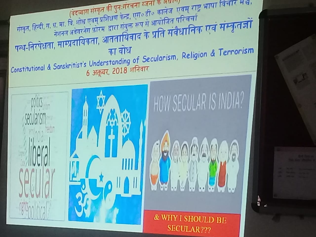 Discussion was opened up with history of the word secular and it’s dictionary meaning, particularly Monier William where he refers secular as इहलौकिक. Moving on with the narrative developed by pseudo-seculars, communists, liberals, & civil society members it became clear it was included in constitution with ulterior motives because people of hindu culture (himalaya to hind mahasagar) gave अभय to who came to this land. There was no need to introduce words-majority -minority’ & then creating hype to safeguard minorities in the communal way and humiliate people of hindu land. Hindu doesn’t qualify to be a religion as 1)it is Godless culture., 2) it has no belief system but culture of questioning. (Deity not to be confused with god) Religion essentially is book , prophet & god based . Secularism is a way to uproot culture of this land and bring in a cultural debasement among youth. Civil society lobby who always condemned & humiliated the way of life of this land had to be challenged academically and intellectually. Terrorism is the manifestation of belief system because one has to spread his belief and this makes act of violence essential. It is absurd to say terrorism has no nation or religion. It is like saying fire is not hot. The hindu terrorism was also discussed and participants failed to understand which country , government, religion funds hindu to become terrorists, what weapons of mass destruction were found from person arrested in the name of hindu terrorists. How a hindu terrorists behave and what he is going to get after death as there is no provision of swarag after killing an ant.