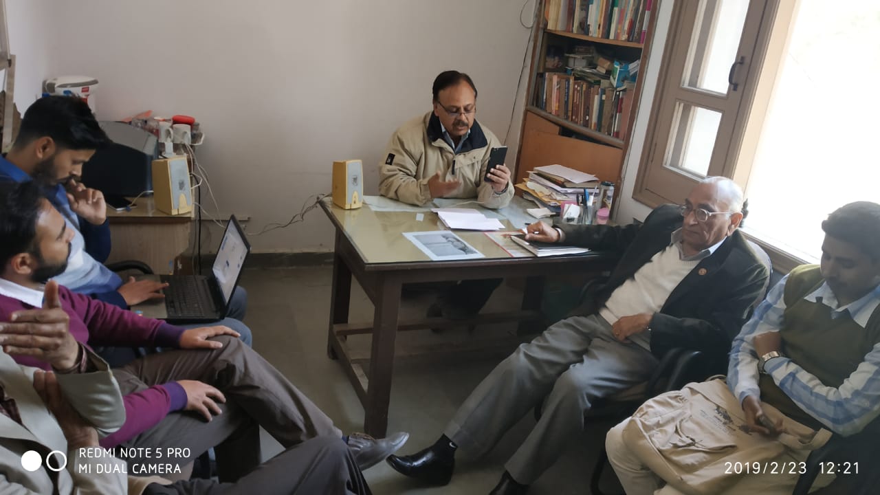 VedaVyaasa Restructuring Sanskrit Scheme”,by Dept of Sanskrit, NCC & SDHDR&T Center of S D College, Ambala Cantt on the topic – “EMERGING THREATS TO INDIAN NATIONALISM & COUNTER STRATEGY THINKING” “भारतीय राष्ट्र-भावना के प्रति उभरते संकट एवम् प्रतिकार-योजना विमर्श” in which Dr R k Gupta (panchkula) , Dr. Kanwal preet (chandigarh), Dr. Muhammad Idris (Srinagar JK),. Joined by video conferencing and Dr Shyam nath Jha, Dr Jaiprakash, Dr Uma Sharma, Sh B D Thaper, Dr Gaurav Sharma, Sh Ravi Arya, Sh Manish, Sh Saurabh joined the discussion. Dept of Sanskrit initiated discussion by raising the issues related to idea of Bharat – geographically and culturally and at the same time it was pointed out that constitutionally india is not defined by boundaries but by lines of controls, more so constitution has devided people of this land on the basis of language, region, parties etc and because of this bogus secularists made it a point not to honour the tools of national feelings and pride like Flag, Vande Matram and it’s cultural values & media took advantage of it to increase its TRP by showing pervert ideas of freedom. It was quite informative and interesting for dept of Sanskrit to understand the perception of JK views presented by Dr Idris ji only in the context of 60-70 yrs of violence. But it was good to know about outlook, perception of Kashmir people and on the other hand dept skt put forth it’s own perception about the India as a nation, as a state and as one land with its culture. Dept of Skt sees , feels India as a whole, right from Himalay to Hind Mahasagar so it’s strange to talk about kashmir as a different entity. There were other issues like politics, pundits, muslims, army, Nehru, politicians, media, pulawama attack were also discussed.