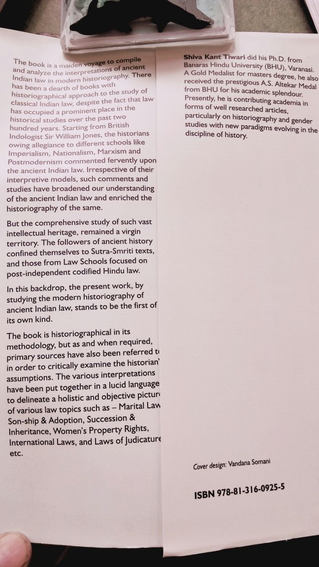 But the comprehensive study of such vast intellectual heritage, remained a virgin territory. The follower of ancient history confined themselves to Sutra-Smriti texts and those from the law schools focused on post independent codified Hindu law.