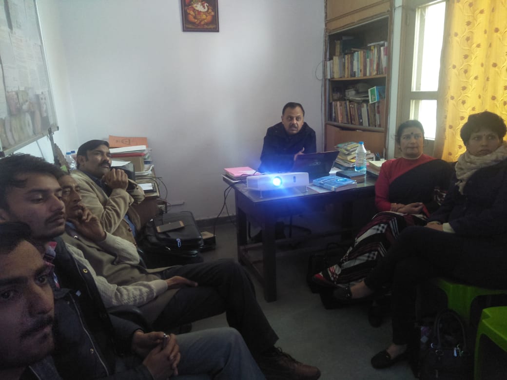 REPORT OF DISCUSSION SESSION Held TODAY (19th January, 2019)on the topic – IDEA OF HEALTH MECHANICS IN SANSKRIT- SHAASTRAAS & MEDICAL SCIENCES (From Bhoot-Shuddhi to Bhoot -Shidhi)” “संस्कृत-शास्त्रों एवम् चिकित्सा-विज्ञान में स्वास्थ्य-यान्त्रिकी का विचार (भूतशुद्धि से भूतसिद्धि तक)” organized Under The VedaVyaas restructuring Sanskrit Scheme of dept of Sanskrit & SDHDR & T Center. Discussion was initiated by comparing definitions of health given by WHO and Sanskrit texts. Dr Jaiprakash Gupt presided over the discussion and presented his views on Ayurvedic health idea, and Dr. Joginder on health in medical sciences, dr shyam nath jha on Tantrik health, Dr Ashok on Yogic health, Dr Harmohan on Religious practices and health, Sh Prashant Dutt Health and cosmetic industry,, Dr Vijay Sharma on idea of health in Sant Baani, Prof Meenakshi on issues of health and modern life style, Sh Manish , Sh Navneet, Sh Harpreet presented views on attitude of young generation regarding health. Dr R K Gupta, Panchkula shared his ideas about health on the basis of Bhagvadgita and quoted various shlokas through video conferencing. Dr Gaurav Sharma talked about medical astrology based health issues via video. Discussion started with a ppt presentation on the issue.