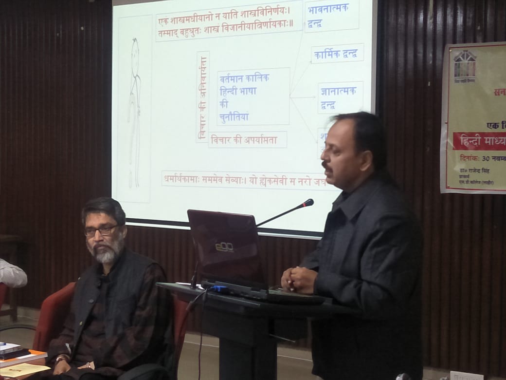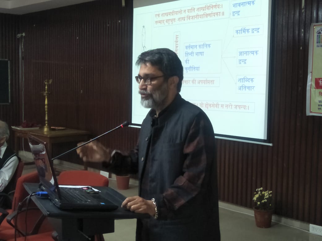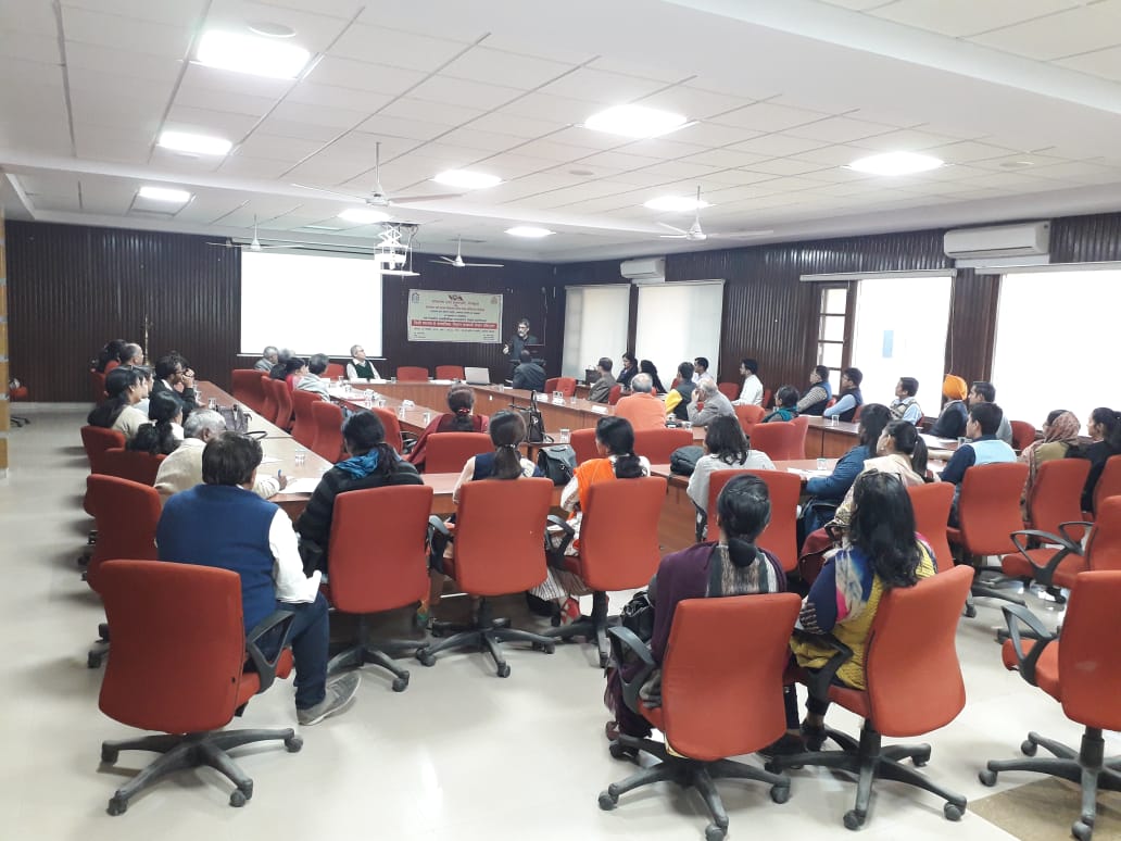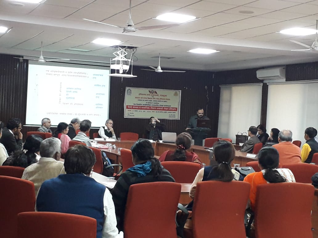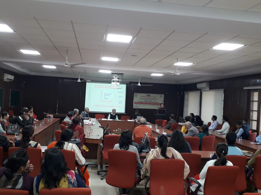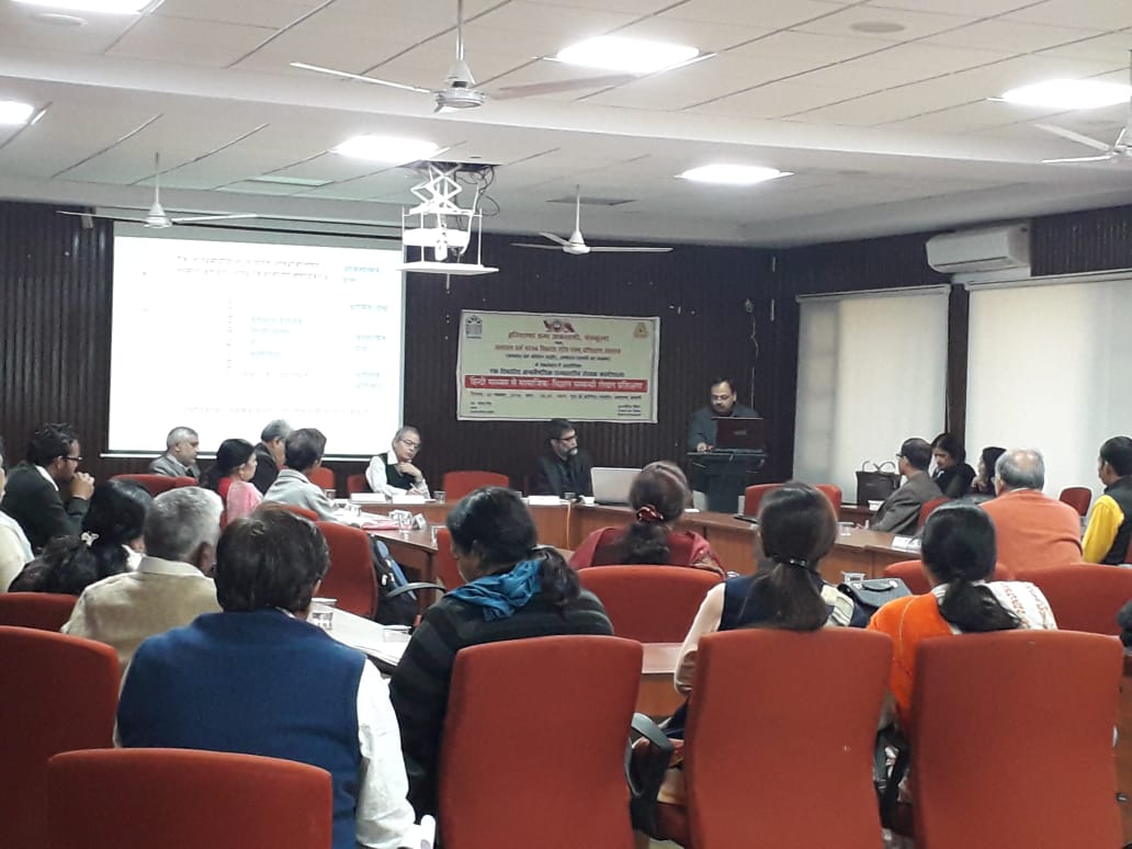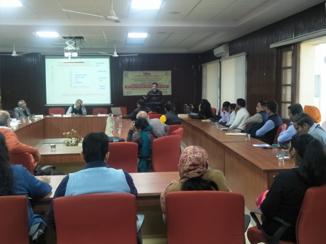 वेदव्यास संस्कृत की पुनःसंरचना योजना के अधीन, संस्कृत, हिन्दी विभाग एवम् स० ध० म० वि० शो० एवम् प्र० केन्द्र द्वारा “sanskritist’s & social scientist’s understanding of socio-political-economic agenda setting process & policy implementation in democracy लोकतन्त्र में सामाजिक – राजनैतिक-आर्थिक कार्यसूची- स्थापना प्रक्रिया एवम् नीति-क्रियान्वयन् के विषय में संस्कृतज्ञों और समाज-विज्ञानियों का बोध (संस्कृत-शास्त्रों / कथाओं के सन्दर्भ में)” विषय पर परिचर्चा आयोजित की गई जिसकी अध्यक्षता श्री अनिल मित्तल जी ने की और डा० विजय शर्मा, डा० रमेश मेहरा, डा० आर० के गुप्ता (पञ्चकूला से वीडियो कान्फ्रेन्सिंग द्वारा) , श्री नवनीत, श्री प्रिंस, सुश्री अंकिता, प्रो० मीनाक्षि आदि ने प्रतिभागिता की। कार्यक्रम के आरम्भ में पावर पाईंट के माध्यम से विषय की आवश्यकता पर चर्चा करते हुए स्पष्ट किया गया कि लोकतन्त्र में पार्टियों की आवश्यकता क्यों है? पार्टियां लोगों को अधिक से अधिक विभाजित करती हैं और लोकतन्त्र को केवल पार्टी-तन्त्र में परिवर्तित कर रही हैं और इस प्रकार लोकतन्त्र में लोक की प्रतिभागिता मात्र वोट डालने तक सीमित हो गई है। पार्टियों द्वारा अपनी कार्यसूची सत्ता के सन्दर्भ में स्थापित इस प्रकार की जाती है जिससे लोगों के एषणाओं को और अधिक उभारा जाता है और वैचारिक द्वन्द्व की अग्रसर करते हुए अपने को सत्ता में बनाए रखने का प्रयोजन सिद्ध होता है। संविधान की मर्यादा लोक –कल्याण या लोक-मंगल के लिए नहीं प्रयुक्त होती अन्यथा जो संविधान में मूल-अधिकारों और राज्यनीति निर्देशकों के रूप में लिख दिया गया है उसससे अधिक या उससे कम किसी अन्य कार्यसूची की आवश्यकता नहीं है। संस्कृत नीति-शास्त्र में लोक-संग्रह ही कार्यसूची का मुख्य आधार है और राजधर्म द्वारा उस लोकसंग्रह को स्थापित करना लक्ष्य है। कार्यसूची मूल्यांकन की पद्धतियां दशकुमार-चरित, पञ्चतन्त्र, हितोपदेश आदि में स्पष्टतया देखने को मिलती हैं। संविधान के सन्दर्भ में लोकतन्त्र को पार्टियों को, उनकी कार्यसूचियों को पुनःपरिभाषित करने की सघन आवश्यकता सभी प्रतिभागियों ने अनुभव की। यदि उचित लगे तो संक्षिप्त पीपीटी भी देख सकते हैं।